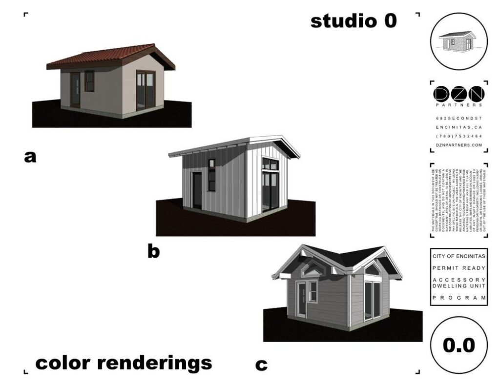 County of San Diego has provided comprehensive sets of architectural plans for ADUs. The range of 600 sq ft studio to 1,200 sq ft 3 bedroom, 3 bath design. Plans and CAD files are available free of charge.